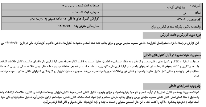 گزارش کنترل های داخلی در تاریخ 1402/09/30