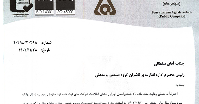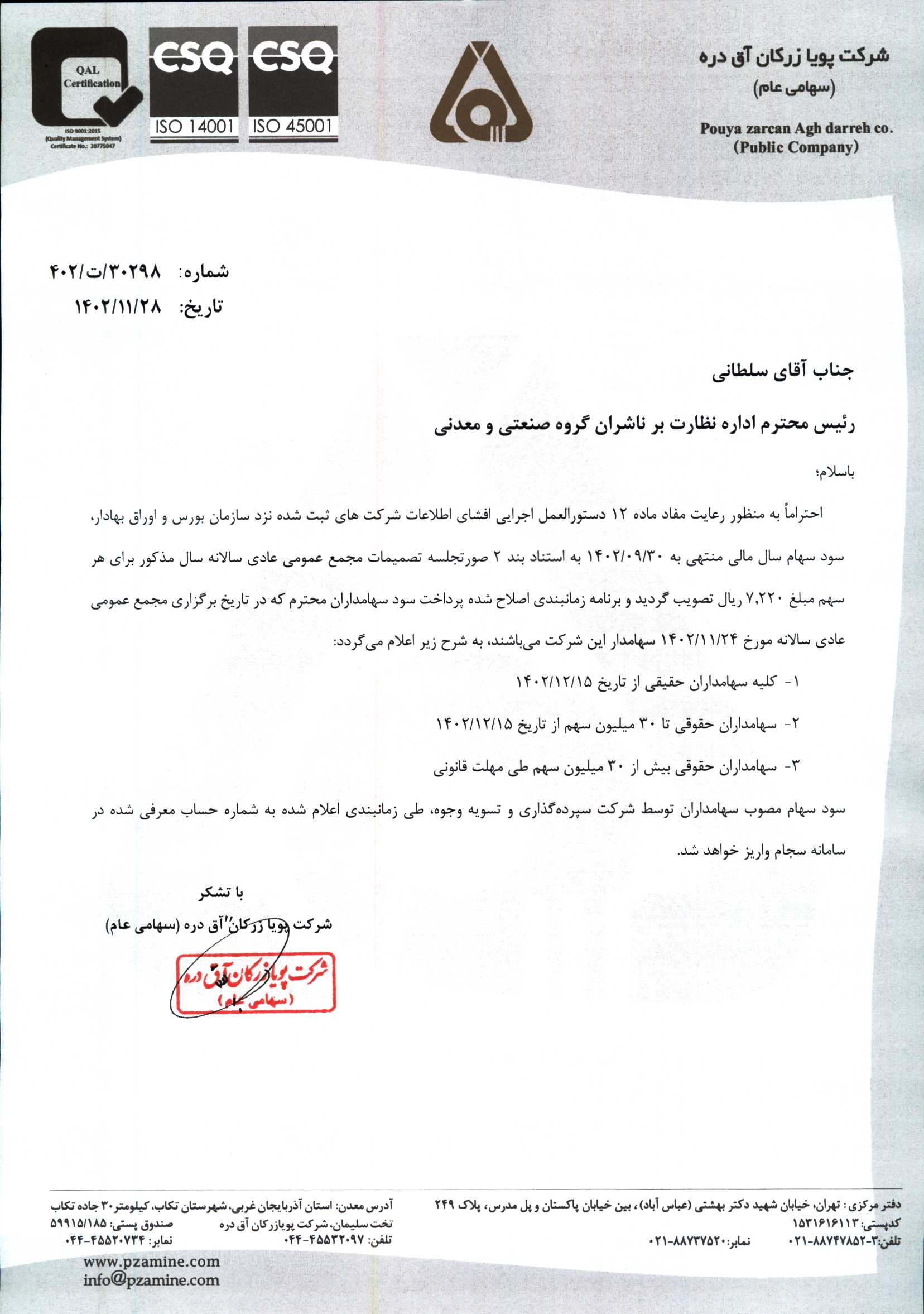 زمان بندی پرداخت سود دوره 12 ماهه منتهی به 1402/09/30